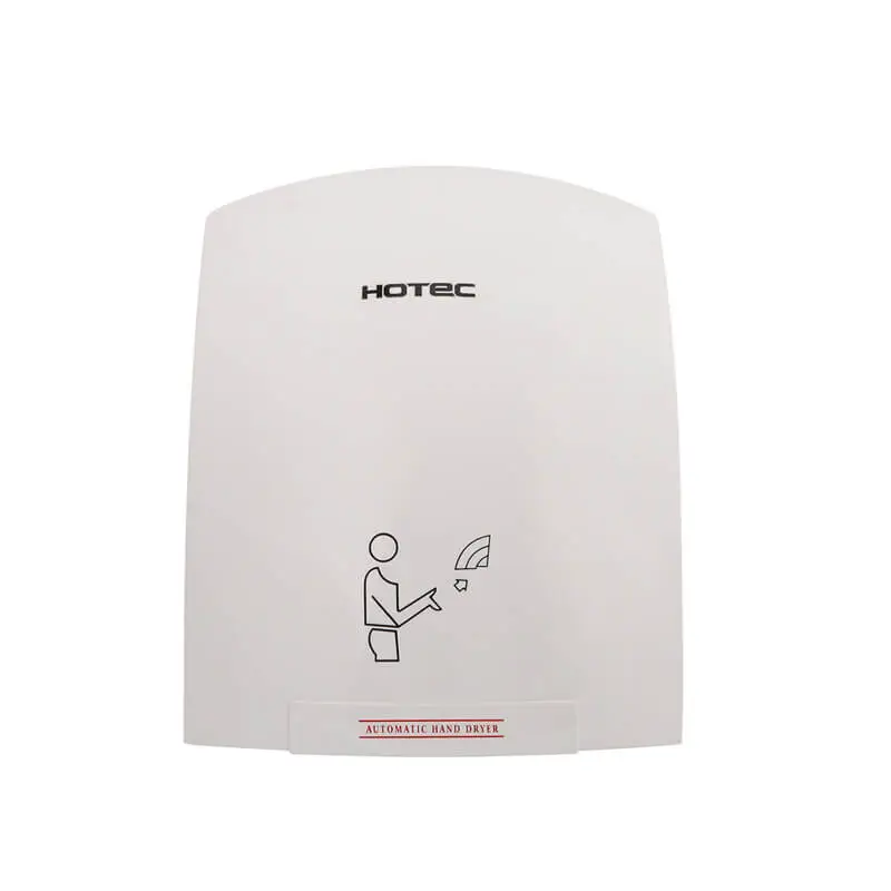 HOTEC Automatic hand dryer made of ABS plastic, white finish. Unique modern look, suitable for any style of washrooms. It is one-piece cover, durability and anticorrosion including a safety thermal cut-off.